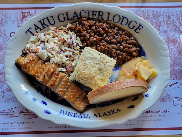 If you were to pick just one food tour, this is our top recommendation. The Taku Glacier Lodge Flight & Feast you’ll depart downtown Juneau by seaplane, soaring over the Juneau Icefield, landing at the base of the Taku glacier, where you will enjoy two relaxing hours at the historic Taku Lodge. While at the lodge, you’ll have an hour to explore the gift shop, sit by a campfire, walk nature trails, or relax in a hammock in the peaceful forest setting. The day is topped off with a hearty salmon barbecue served with baked beans, coleslaw, fruit compote, and freshly made herb biscuits.