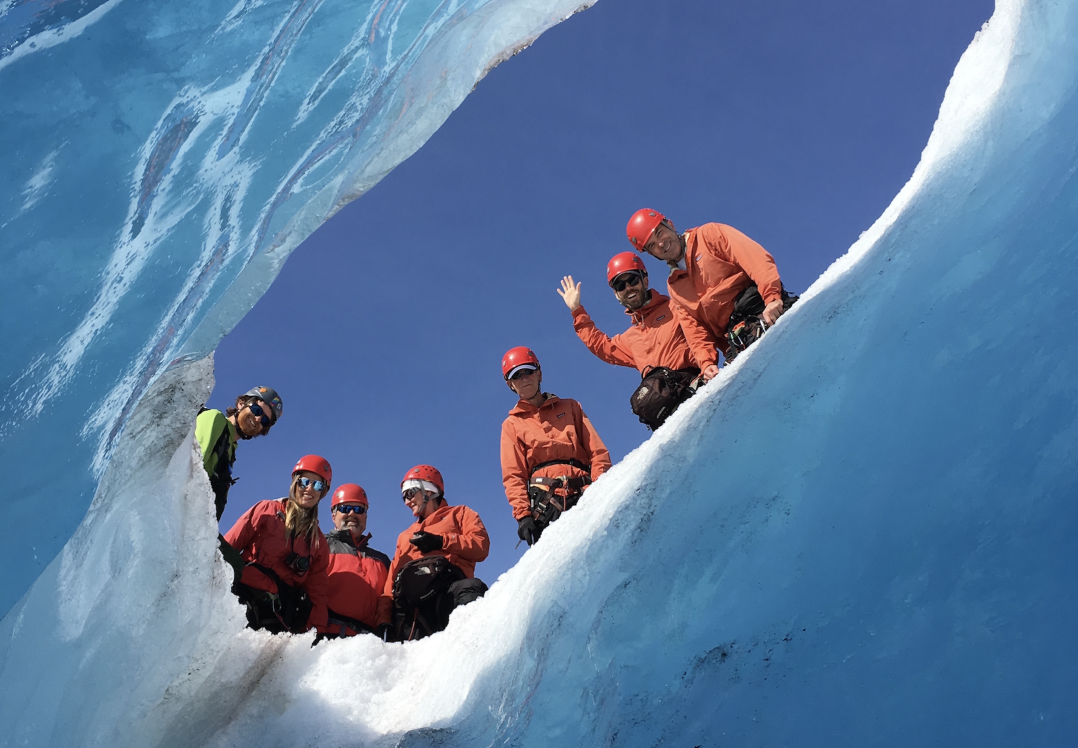 Upon landing at our base camp on the glacier, your guide will outfit you with crampons, a helmet, and an ice axe to make it easier to walk on the icy terrain. As you begin your trek, our guides will demonstrate different techniques for glacier travel and allow time for practice as you become comfortable walking on the ice. You will have ample opportunity to capture unique once-in-a-lifetime photos while your well-trained guides teach you about the history and geology of the area. After your tour, our comfortable vans will bring you back to town.